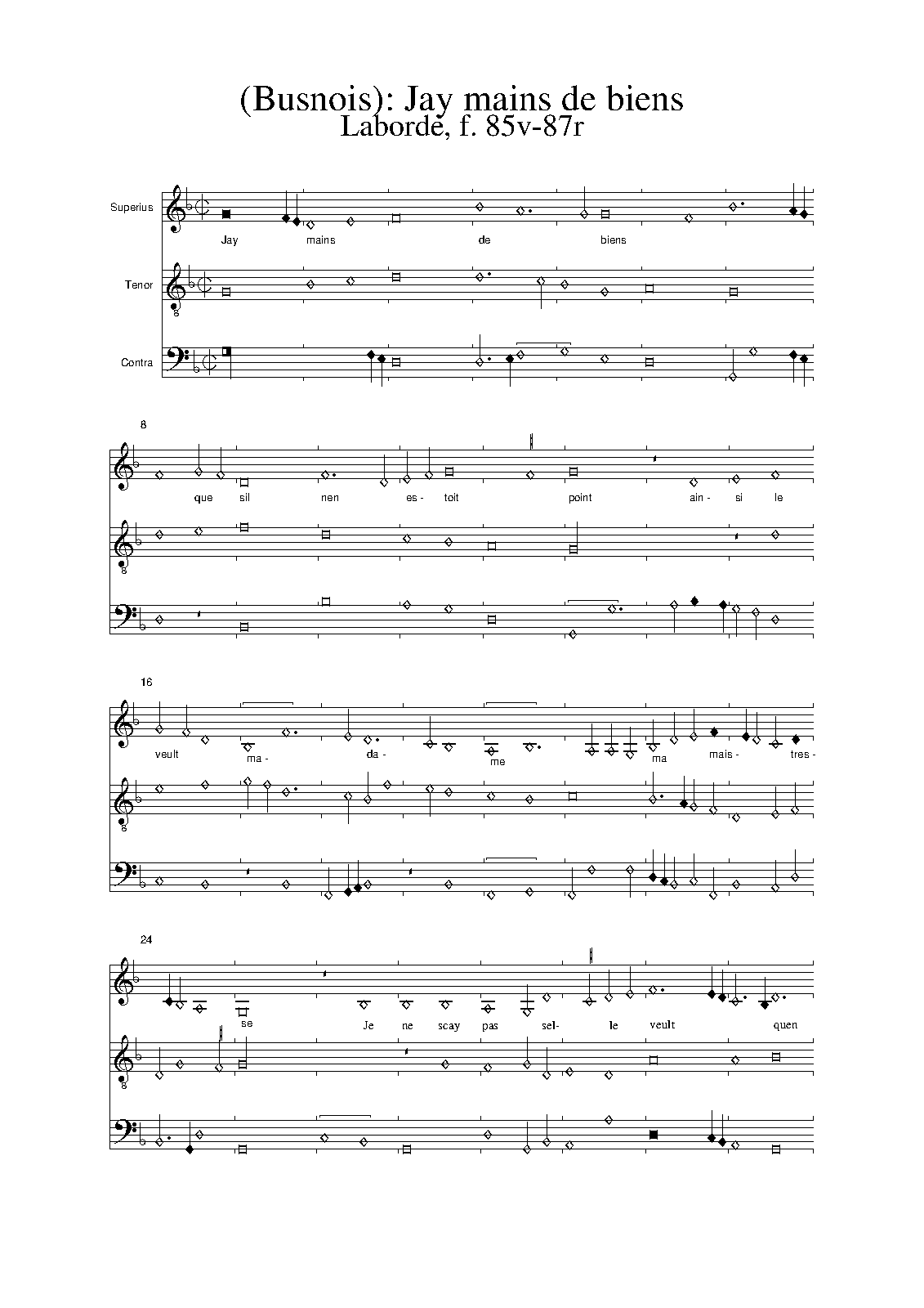 | Alternative. Title | J'ai mains de biens que s'il n'en estoit nuls / O mira circa nos [contrafactum version] |