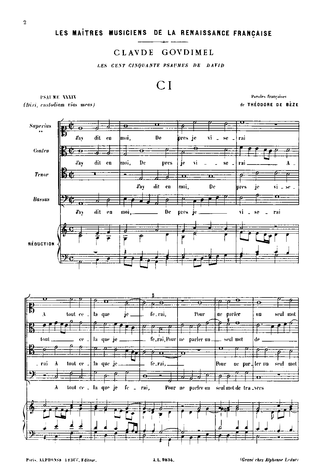 | First Publication. | 1568 in 150 Pseaumes de David (No.101) |