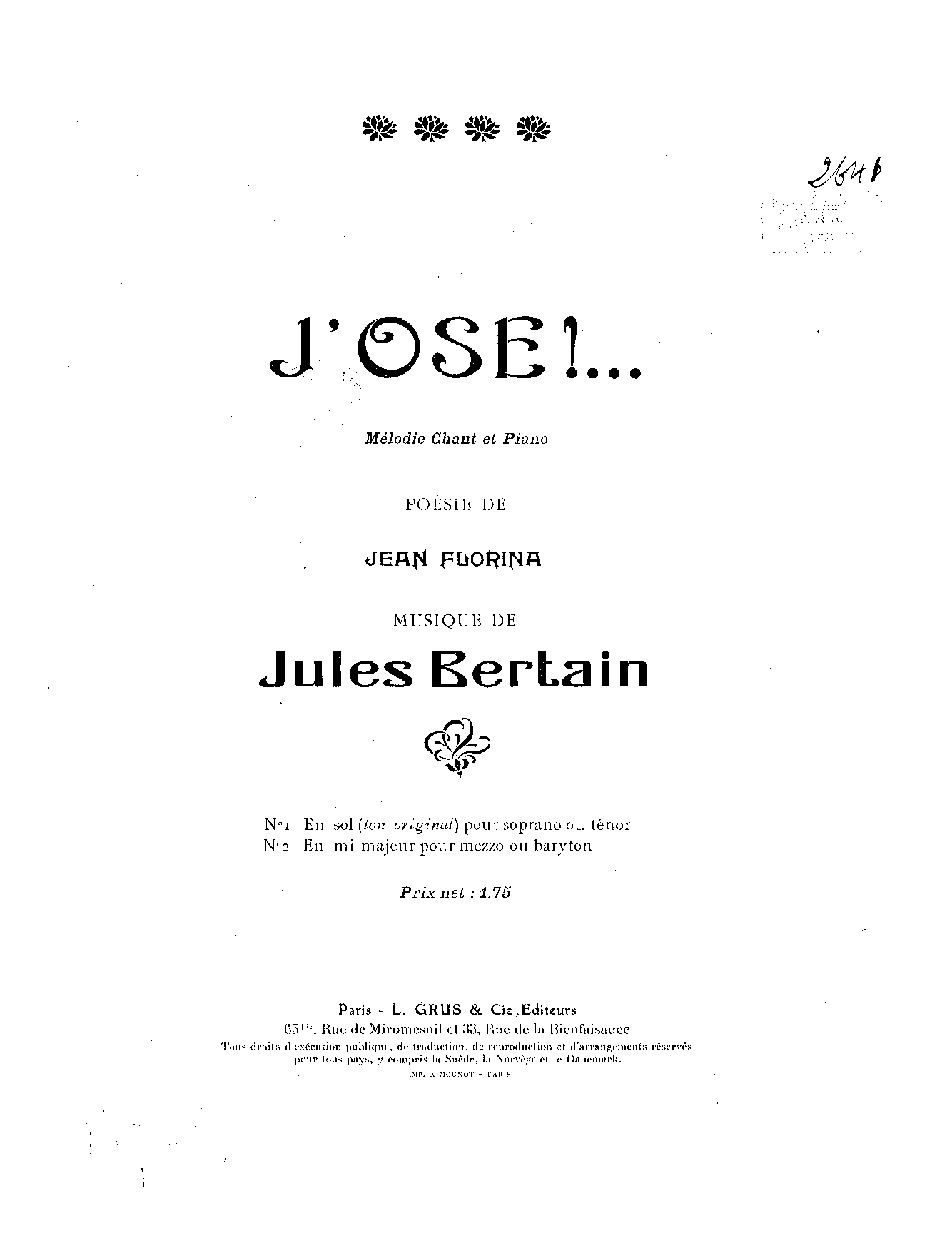 | Dedication | hommage à Madame Dubois-Lauger, de l'Opéra |