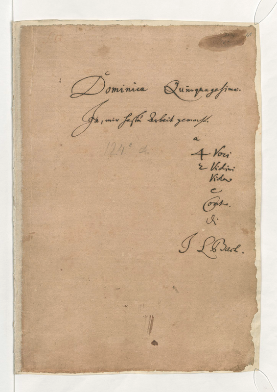 Dominica Quinquagesimæ Ja, mir hastu Arbeit gemacht. a 4 Voci 2 Violini Viola e Cont. di J L Bach.; J. J. Do[min]ica Quinquagesimæ. Concerto à 2 Violini, Viola, 4 Voci, è Continuo Bach.