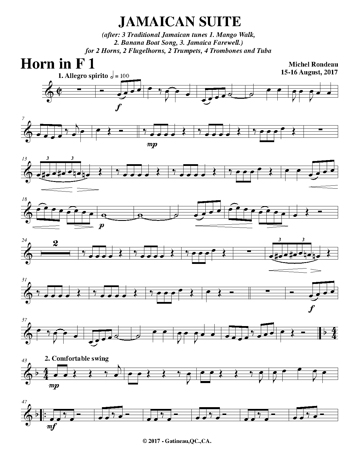 | Movements/SectionsMov'ts/Sec's | 3 movements, after 3 traditional Jamaican tunes: