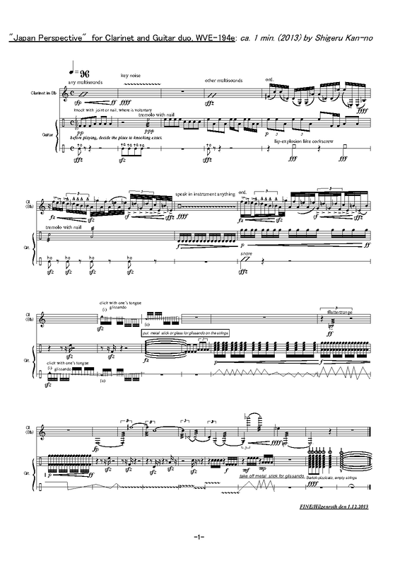 There are a lot of noise technic like japanese music. But my music has so much density. The guitar may not play ordinario, but with voice of as noise. The player strike with joint th body. The each places are very different. The guitarist must decide the fixed spot alone. See website here.