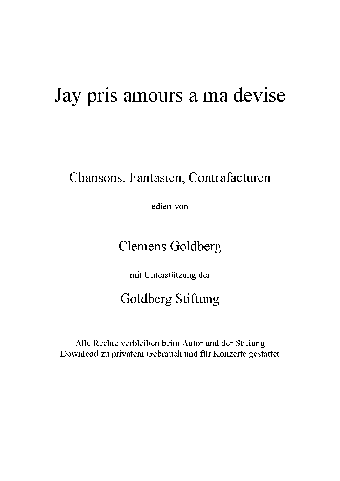 | Alternative. Title | Chansons, Fantasien, Contrafacturen ediert von Clemens Goldberg |