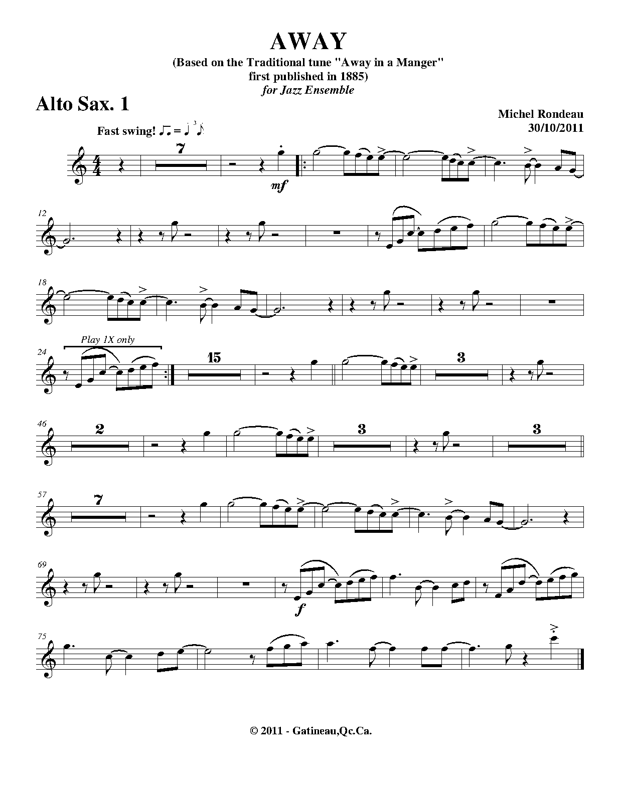 ⇒ 16 more: Alto sax 2 • Tenor sax 1 • Tenor sax 2 • Baritone sax • Trumpet 1 • Trumpet 2 • Trumpet 3 • Trumpet 4 • Trombone 1 • Trombone 2 • Trombone 3 • Trombone 4 • Bass • Piano/Keyboard • Drums • Engraving files (Finale)
