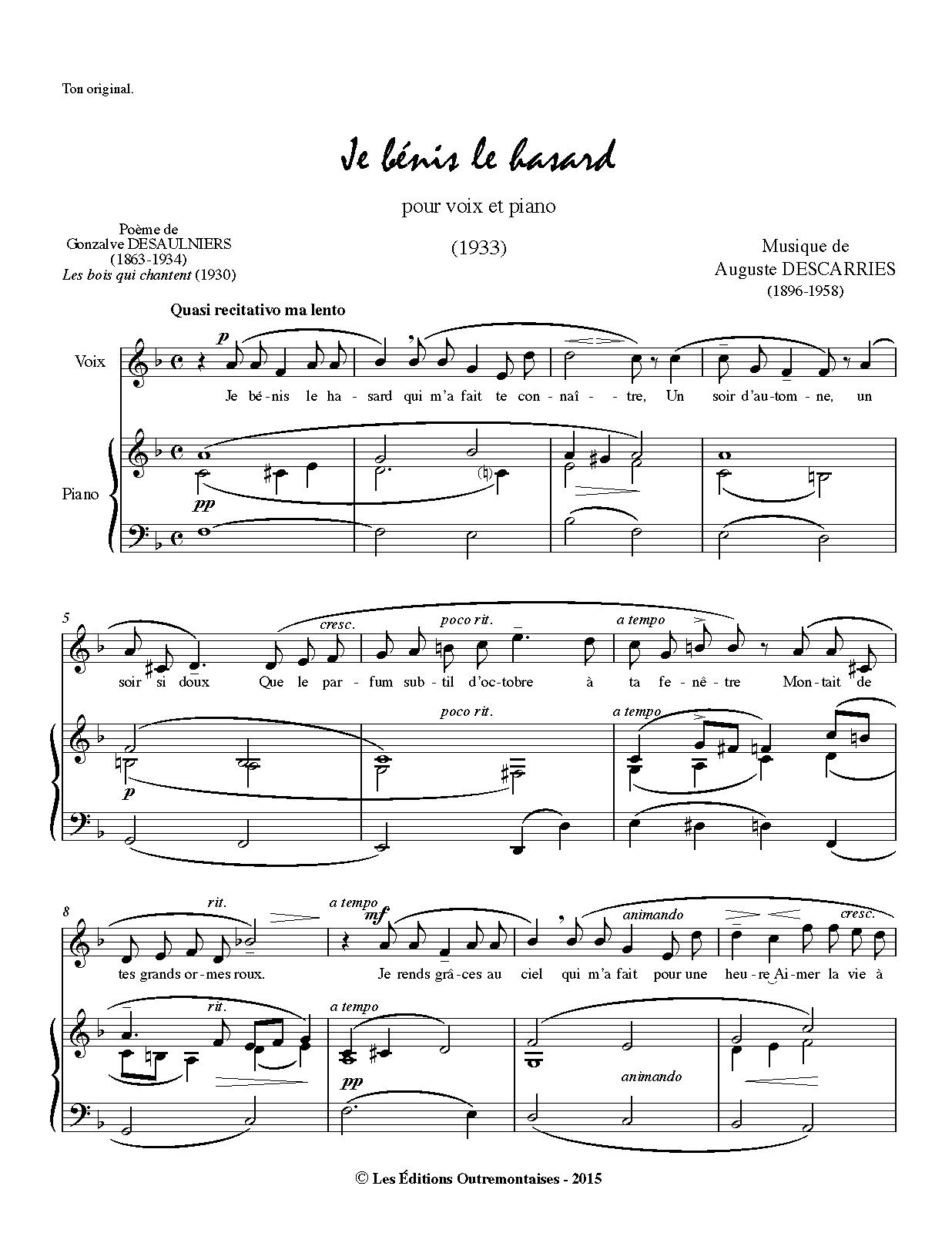 | Extra Information | Publié avec l'approbation de l'Association pour la diffusion de la musique d’Auguste Descarries (ADMAD). |