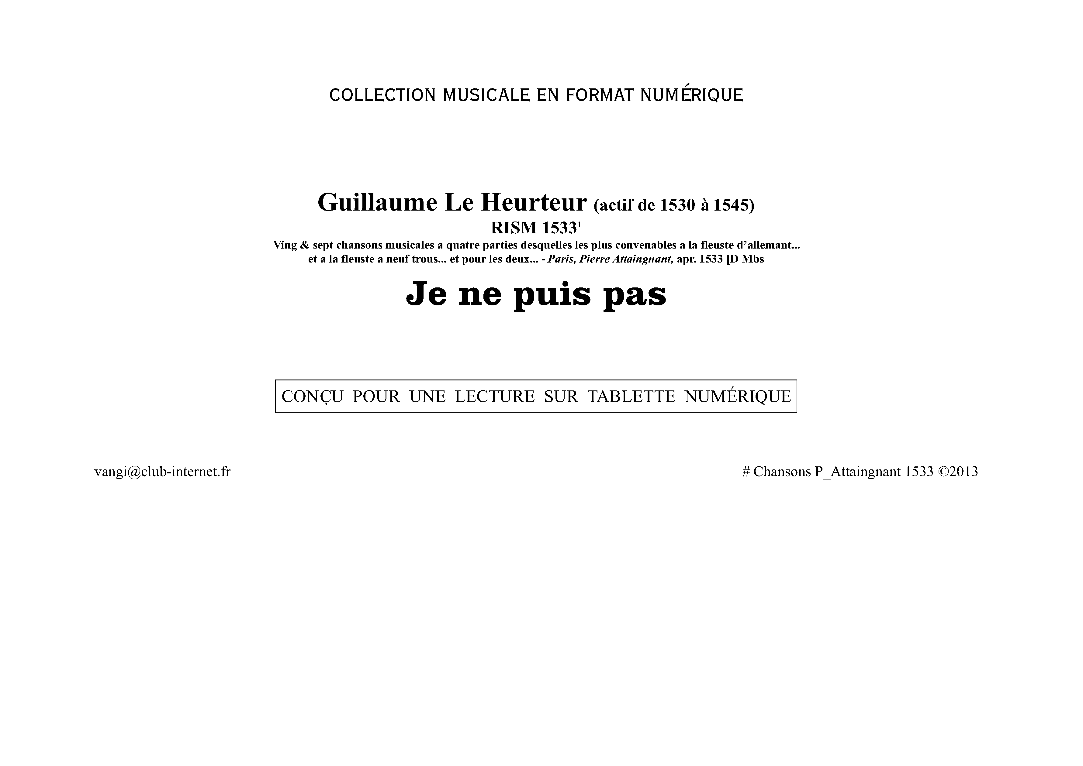 | Composer | Le Heurteur, Guillaume |
