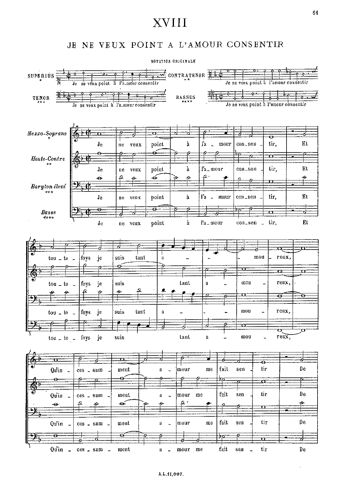 | Work Title | Je ne veux point a l’amour consentir |