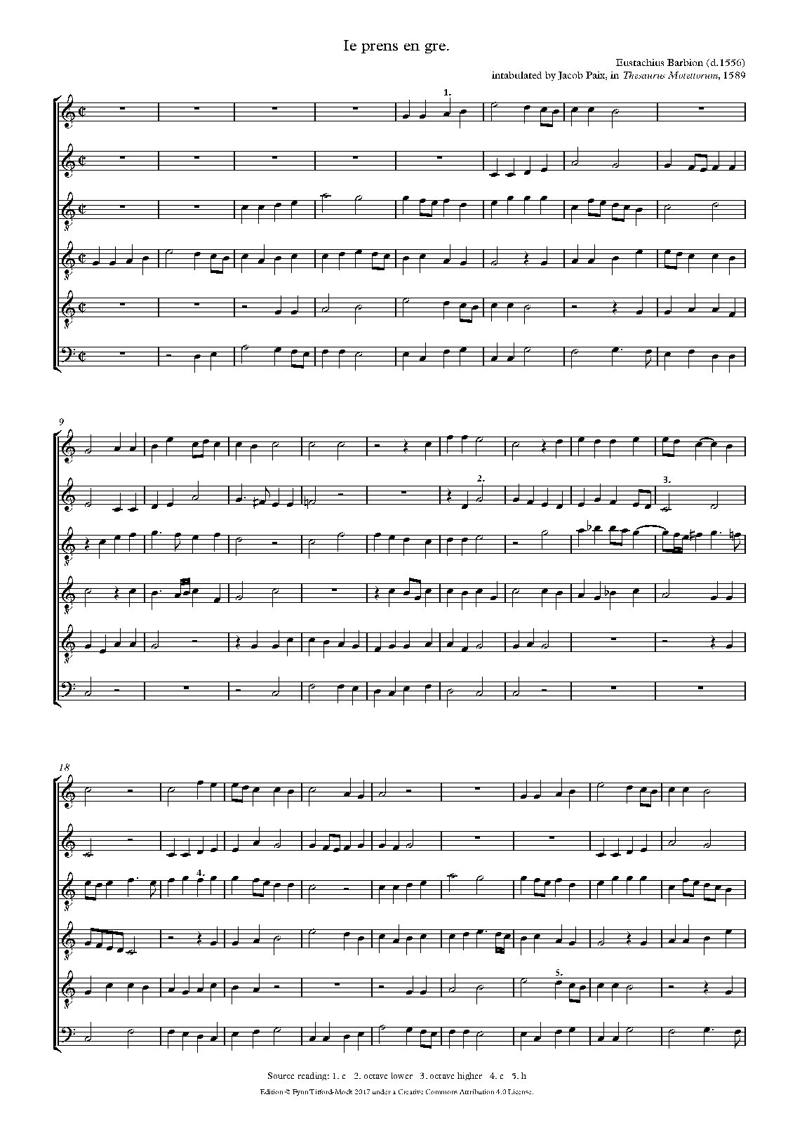 | Extra Information | Only surviving source is the Paix 1589 keyboard intabulation |