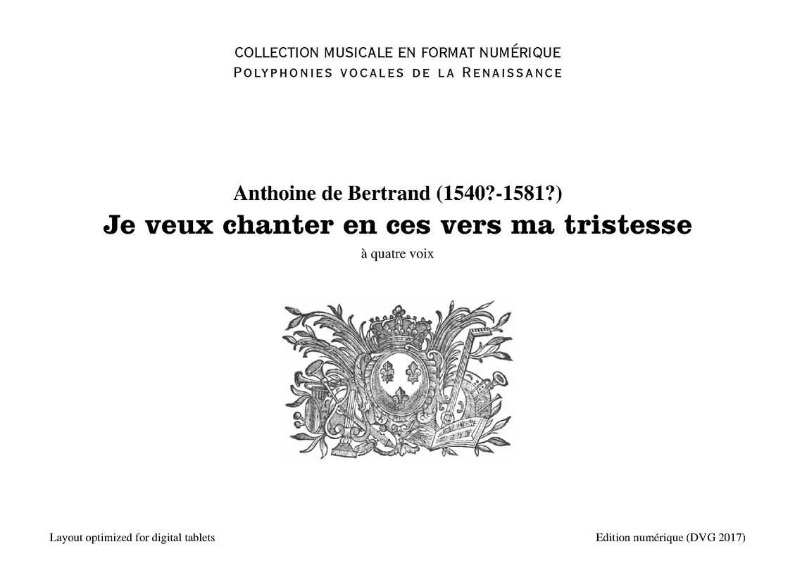 | Work Title | Je veux chanter en ces vers ma tristesse |