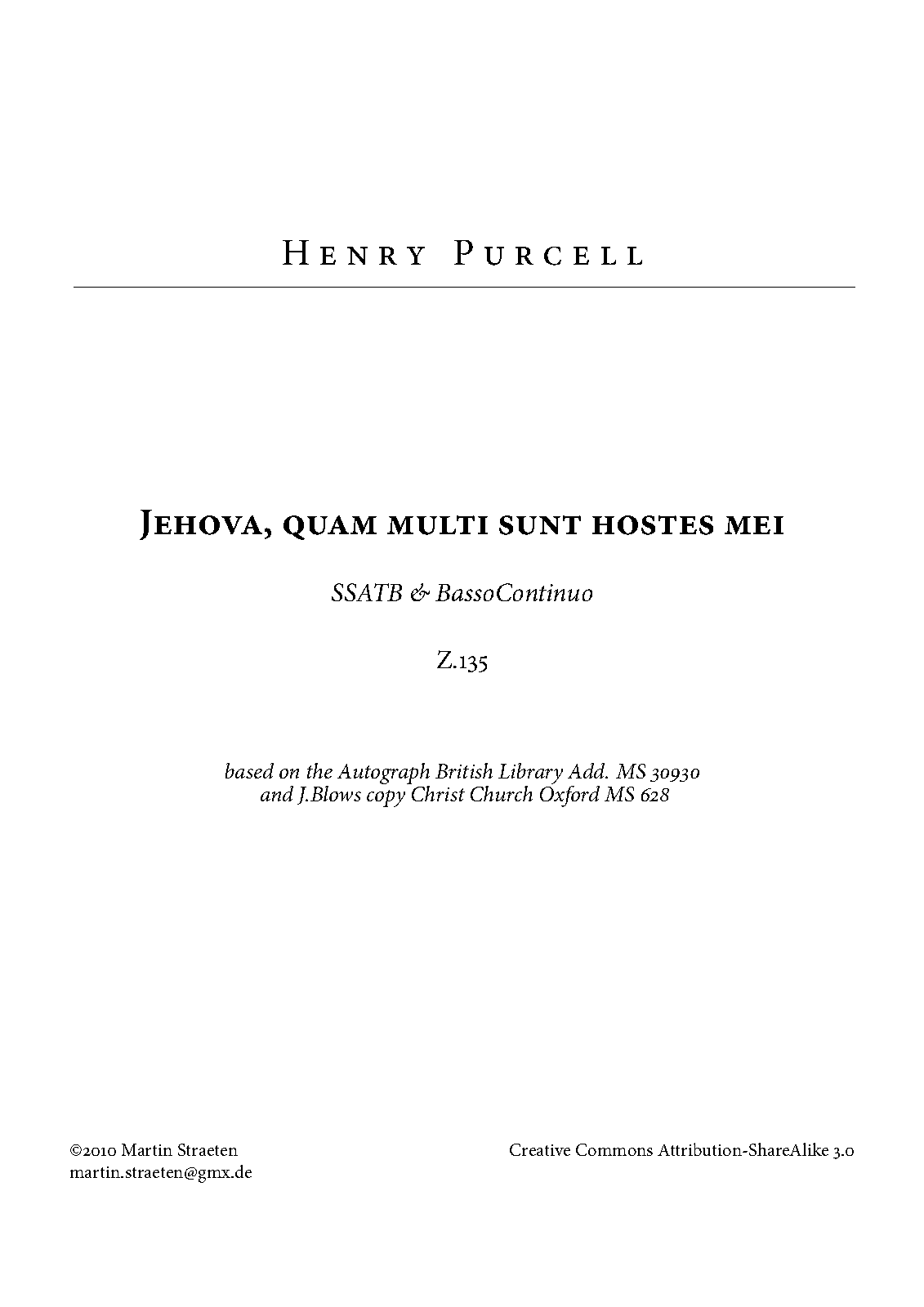 | Work Title | Jehovah, quam multi sunt hostes mei |