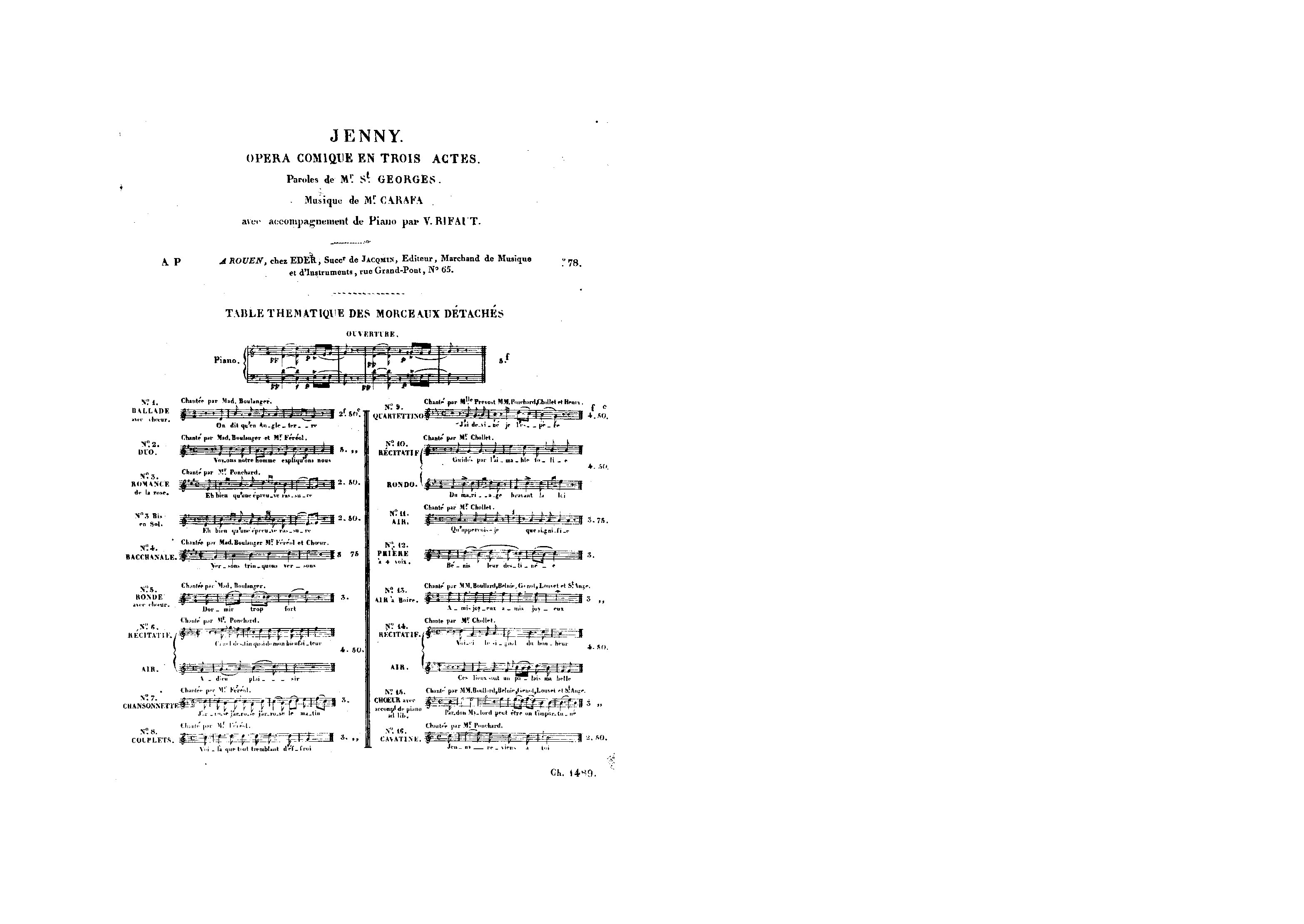 - Paris: Opéra-Comique (Ventadour)