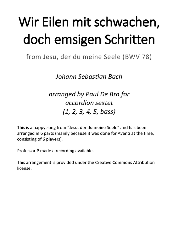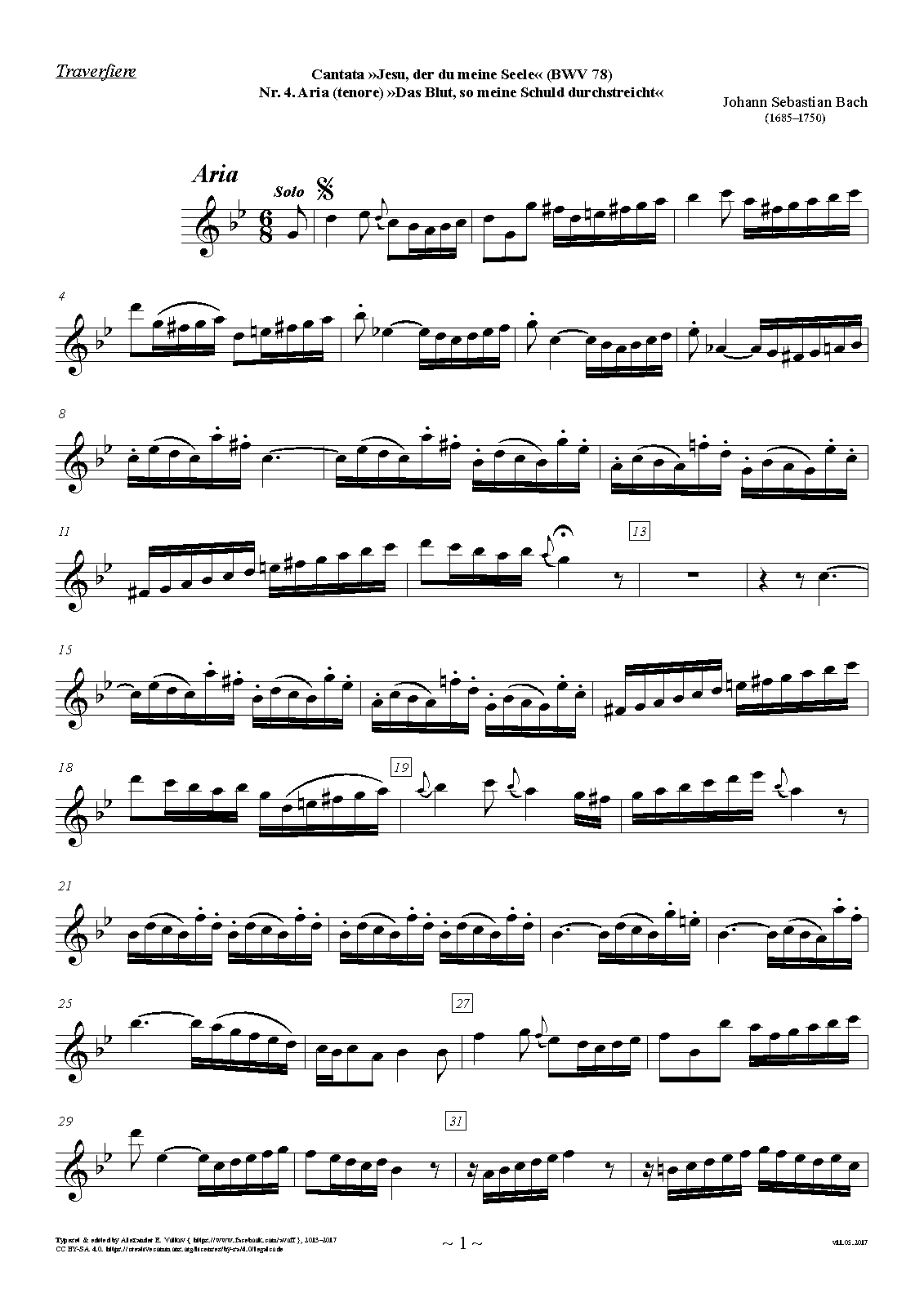 7 more: 2. Aria: 'Wir eilen mit schwachen, doch emsigen Schritten' • 3. Recitativo: 'Ach! ich bin ein Kind der Sünden' • 4. Aria: 'Das Blut, so meine Schuld durchstreicht' • 5. Recitativo: 'Die Wunden, Nägel, Kron und Grab' • 6. Aria: 'Nur du wirst mein Gewissen stillen' • 7. Chorale: 'Herr, ich glaube, hilf mir Schwachen' • Engraving files (MuseScore)