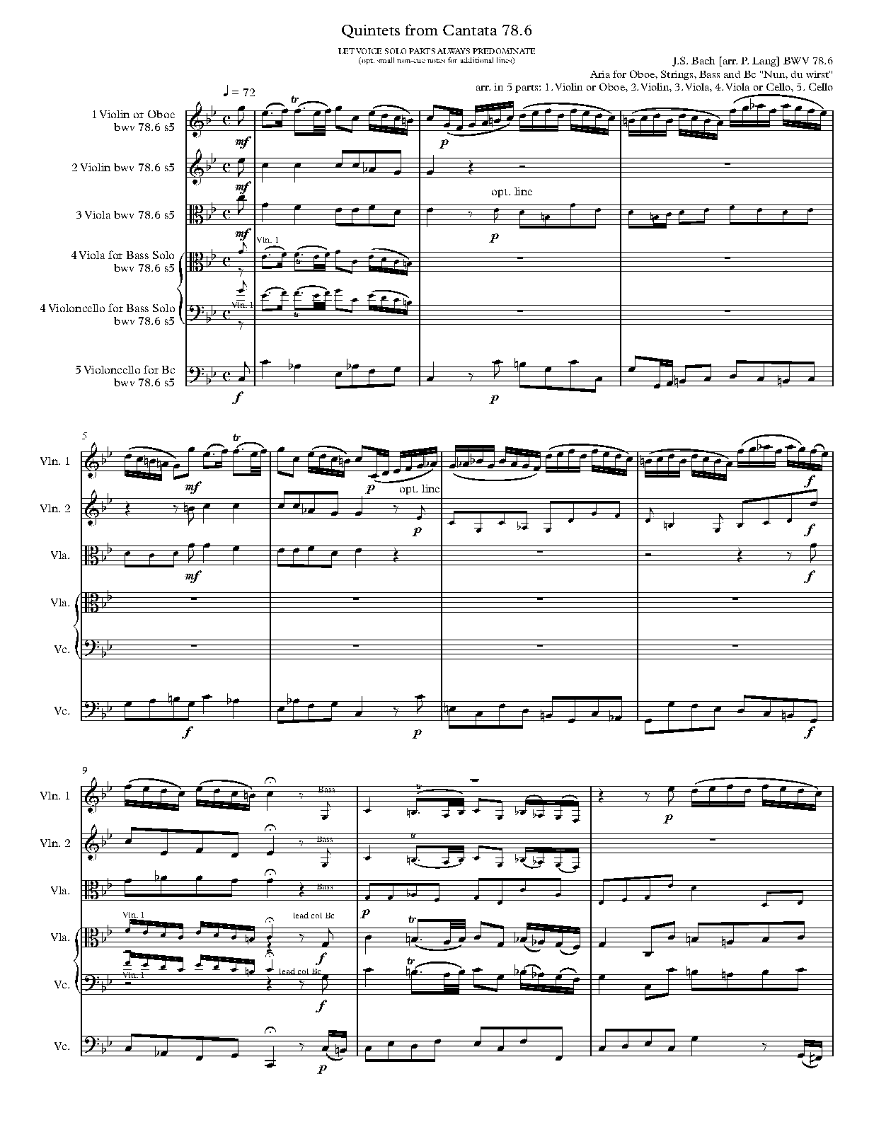 For Quintets: Oboe ad lib. and Strings (Lang)