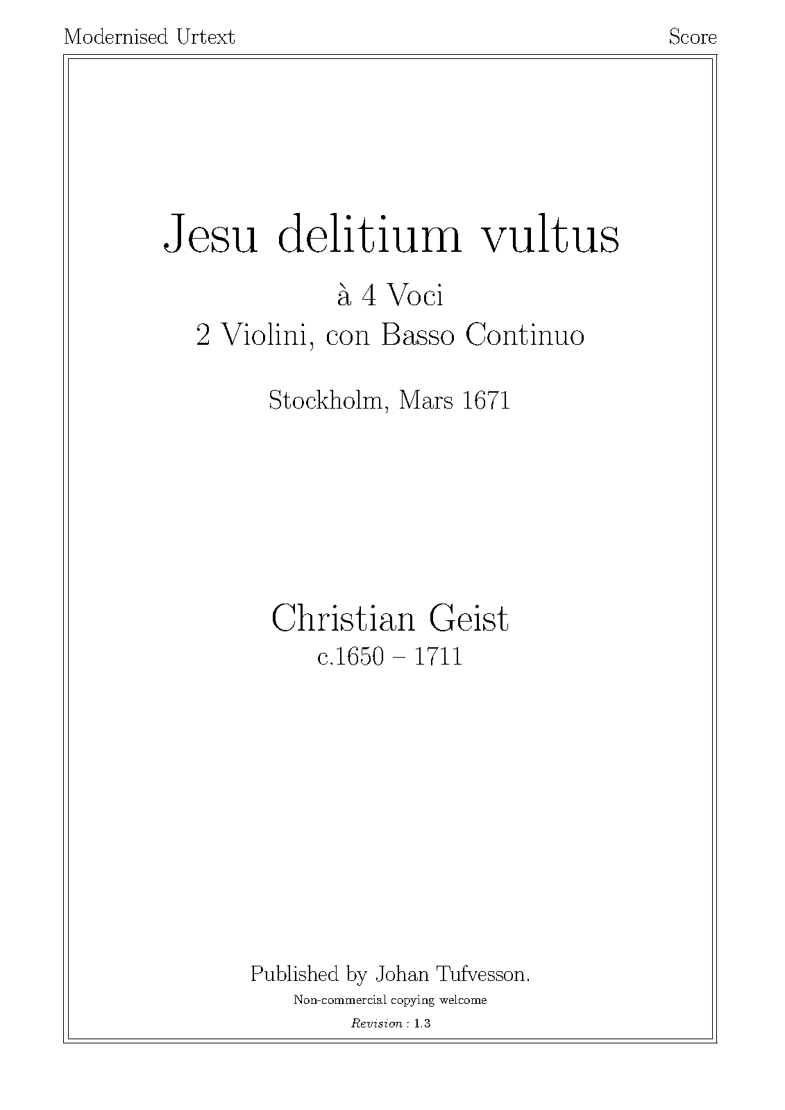 Jesu delitium vultus, Sacred song for choir and soli SATB, 2 violins and Continuo