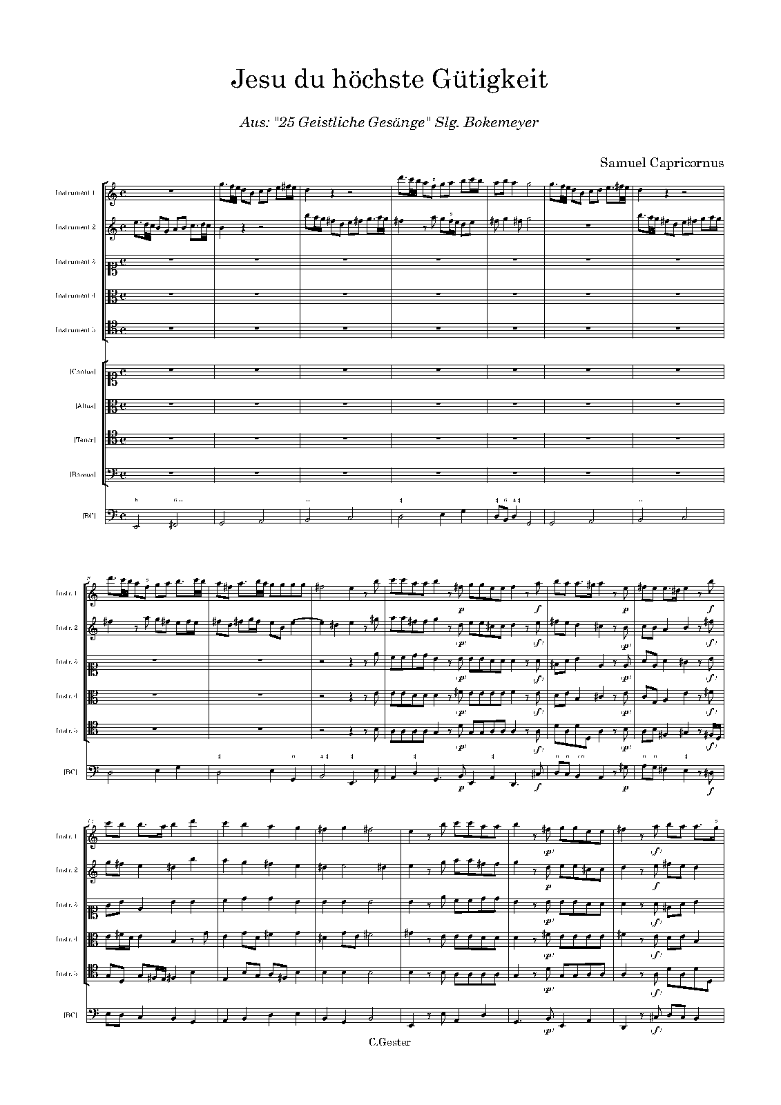 | Instrumentation | 4 voices (SATB), 2 violins, 3 viols, continuo |