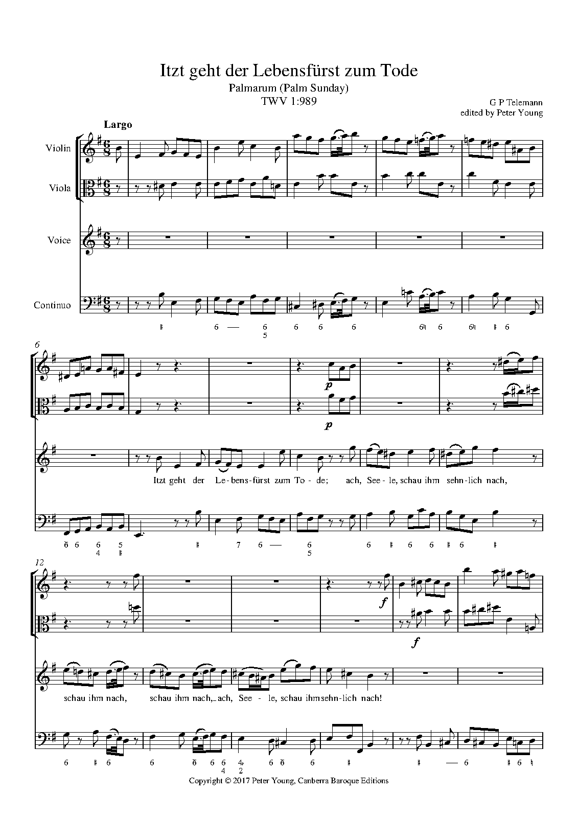 | Instrumentation | SATB chorus and solos, flute, 2 oboes, strings, continuo. Short version: tenor (or soprano), violin, viola, continuo |