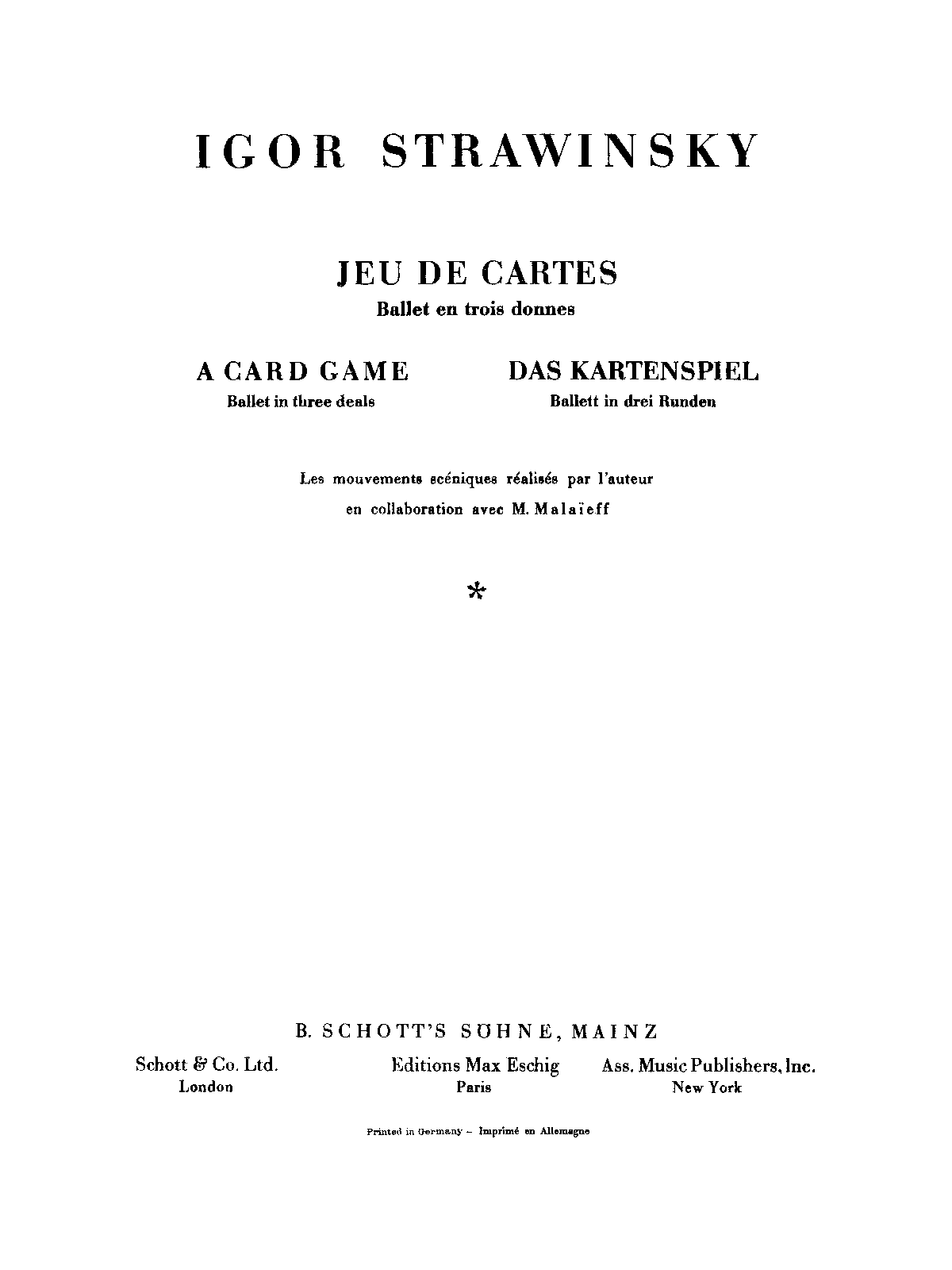 | Genre Categories | Ballets; Theatrical Works; For orchestra; |