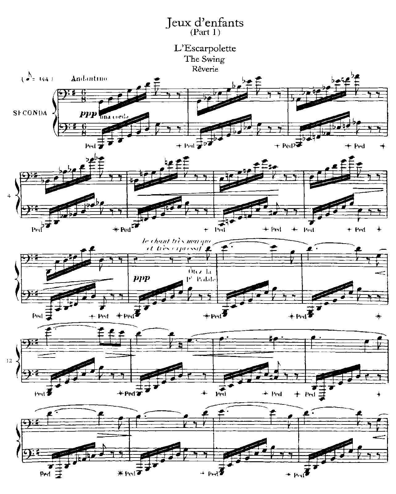 ⇒ 12 more: 1. L'Escarpolette • 2. La Toupie • 3. La Poupée • 4. Les Chevaux de Bois • 5. Le Volant • 6. Trompette et Tambour • 7. Les Bulles de Savon • 8. Les Quatre Coins • 9. Colin-Maillard • 10. Saute-Mouton • 11. Petit Mari, Petite Femme! • 12. Le Bal