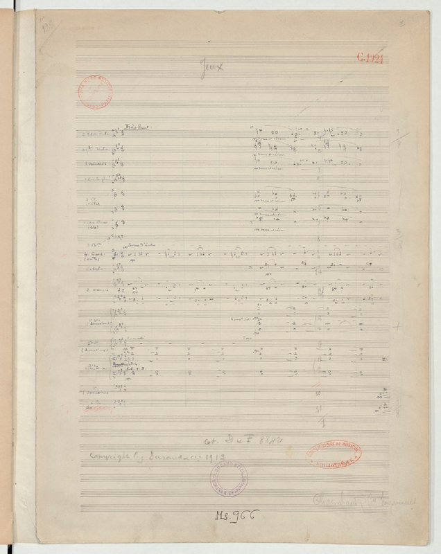 Publisher. Info. Copyist's manuscript, with annotations by Debussy, Diaghilev and Nijinsky