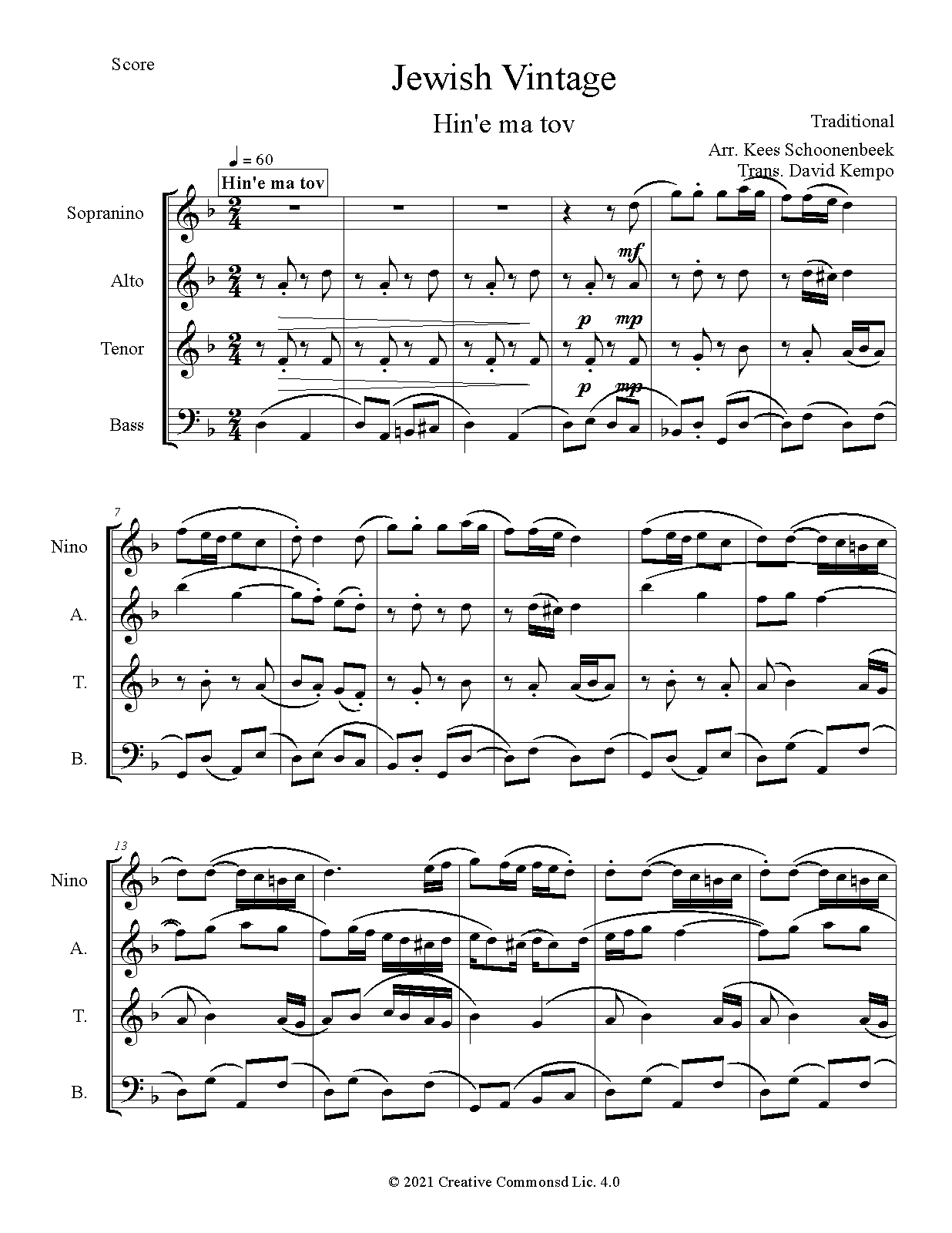Misc. Notes An arrangement of a number beautiful Jewish songs