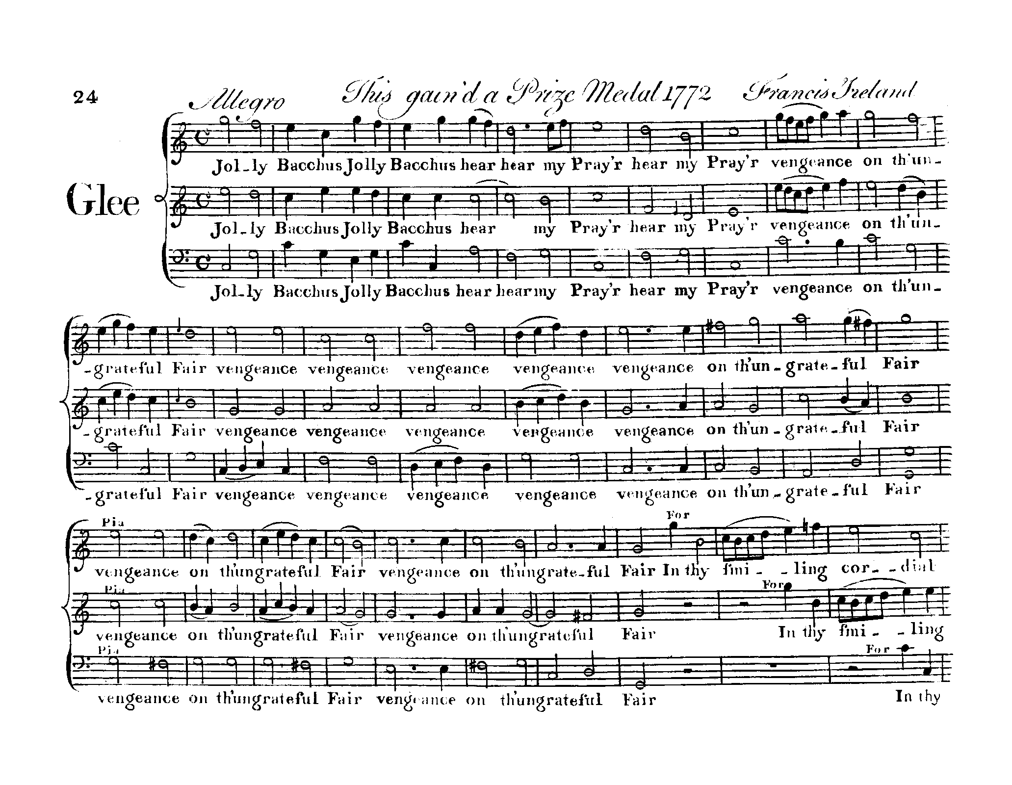 | Alternative. Title | Glee; Jolly Bacchus, jolly Bacchus, hear my pray'r |