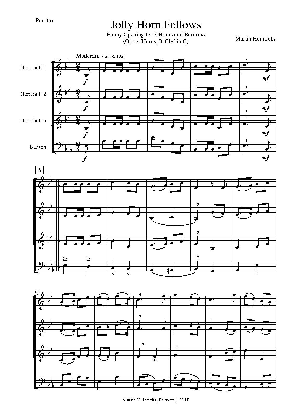 | Alternative. Title | Funny Opening for 3 Horns and Baritone |