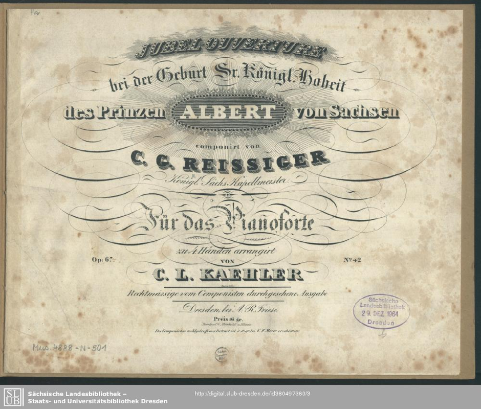Jubel-Ouverture zur Huldigung unsers allergnaedigsten Koenigs Anton; Jubel-Ouverture bei der Geburt Sr. Koenigl. Hoheit des Prinzen Albert von Sachsen