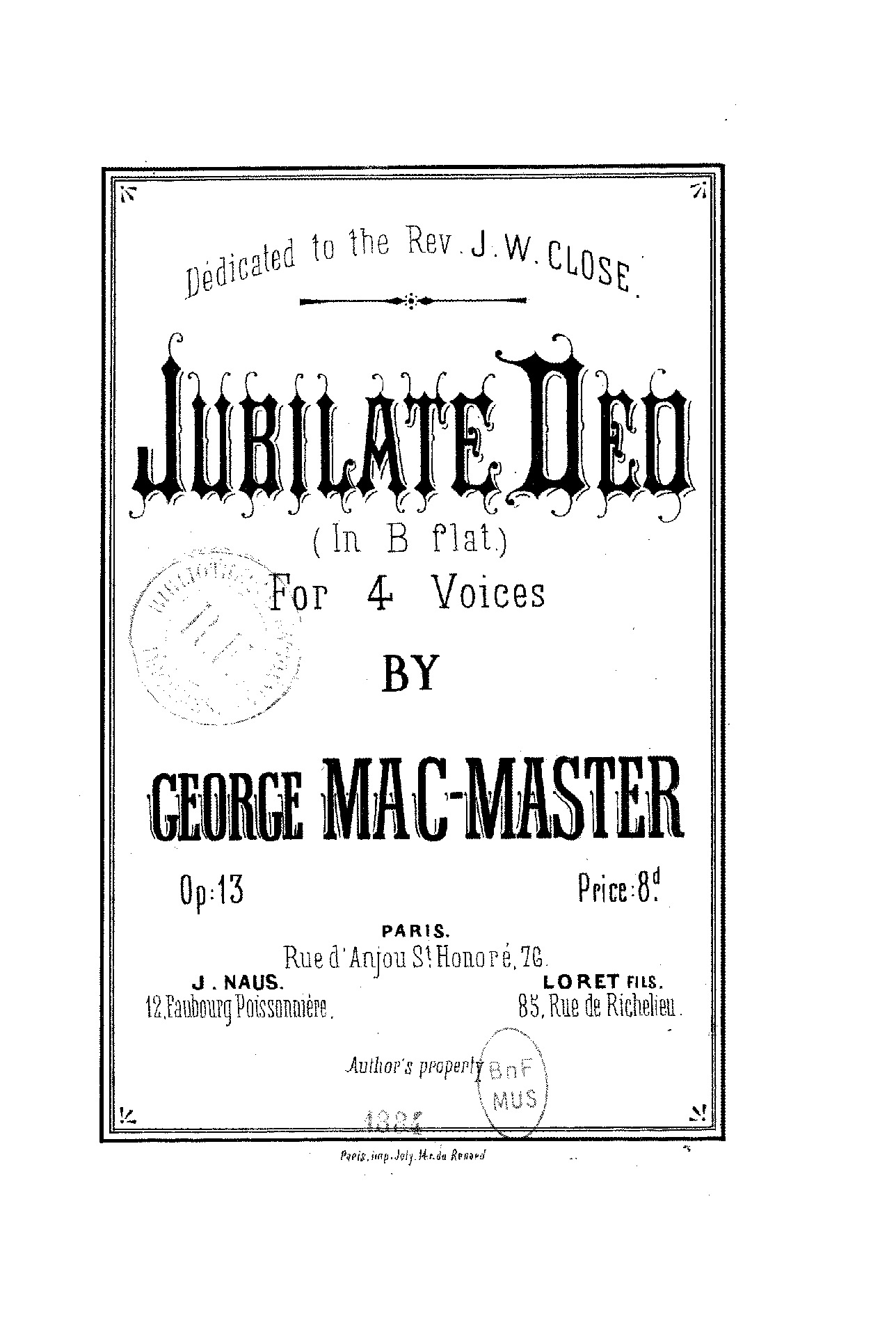 | Work Title | Jubilate Deo (in B-flat) for 4 Voices |