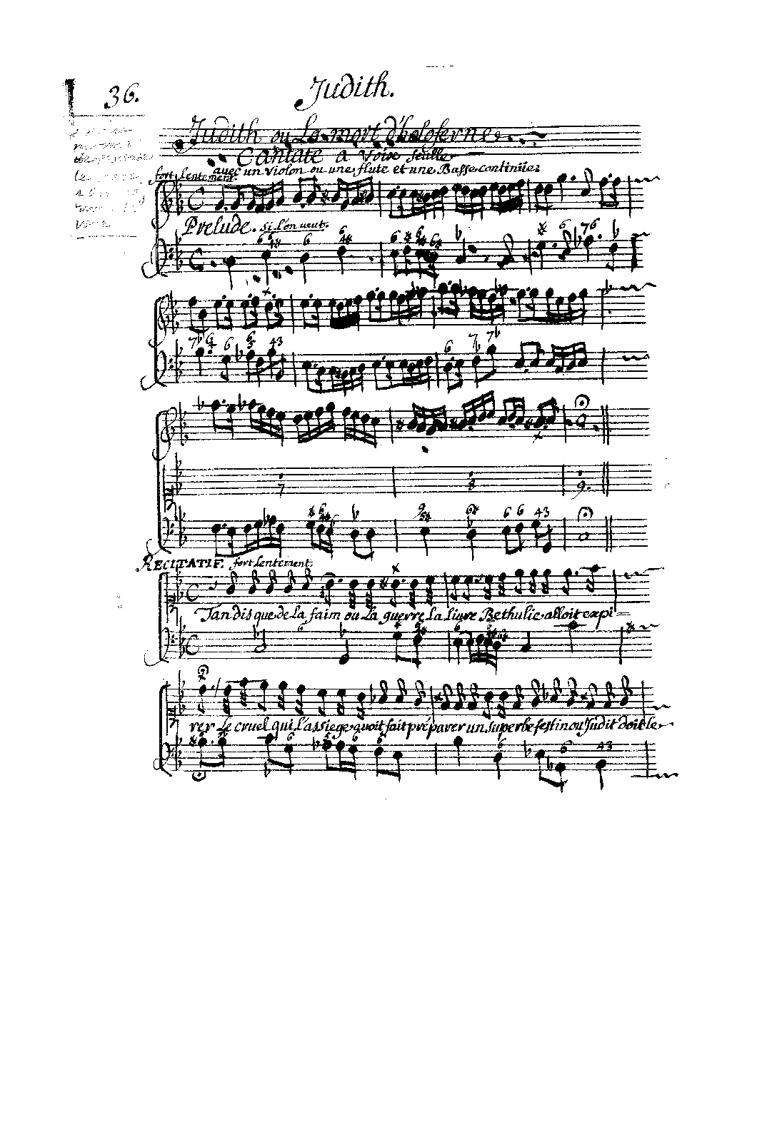 Score extracted from a manuscript book including 5 others cantatas : "Abraham ou le sacrifice d'Isaac", "Samson trahi par Dalila", "La chute de Salomon", "Les trois enfants de la fournaise" & the incomplete "Baltassar"