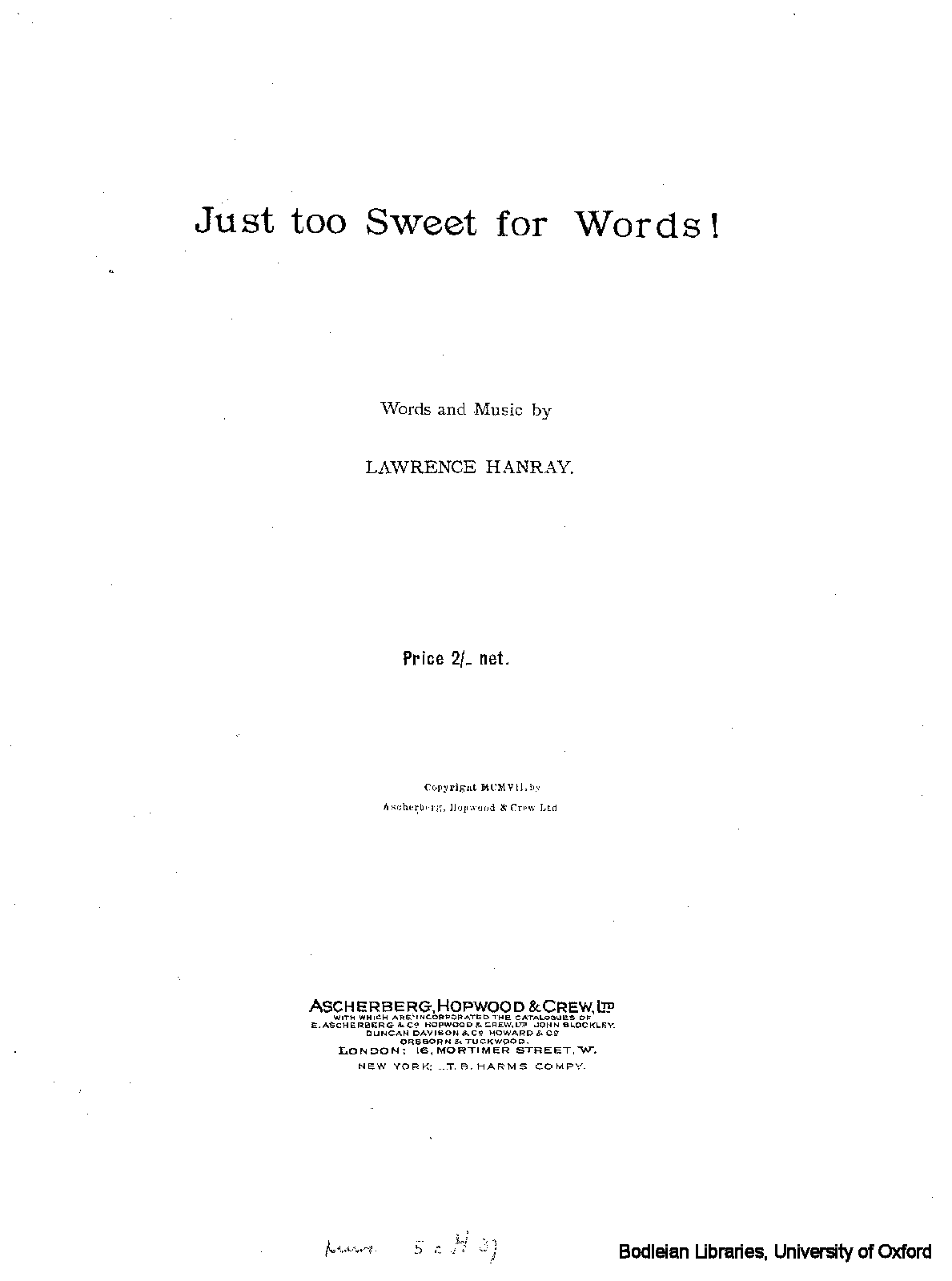 | Year/Date of CompositionY/D of Comp. | 1907 |