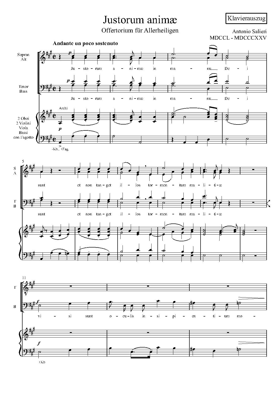 Voices: mixed chorus (SATB) Orchestra: 2 oboes, bassoon, 3 trombones (colla parte), strings