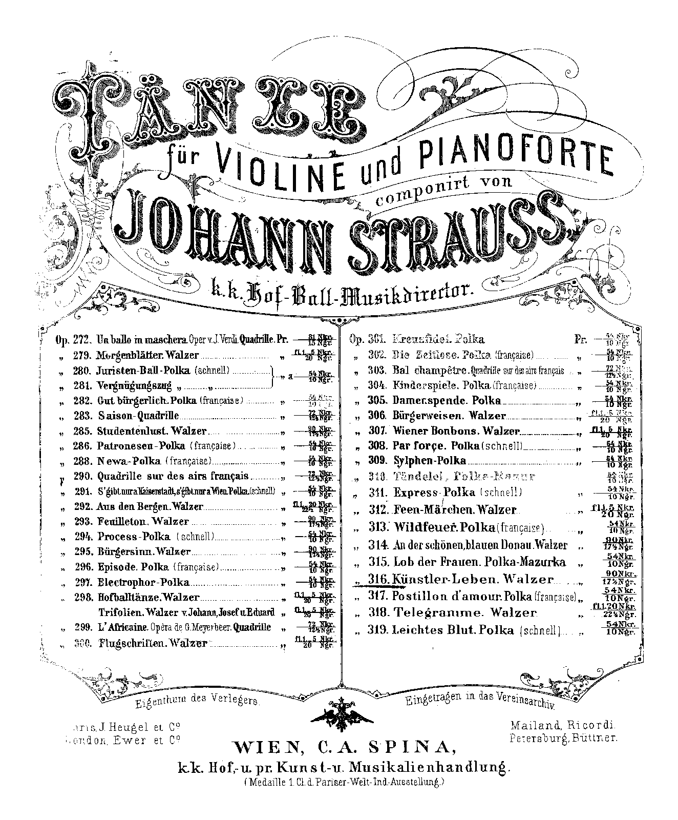 Publisher. Info. Sammlung der beliebtesten Tänze von Johann, Josef und Eduard Strauss - Vol. 4