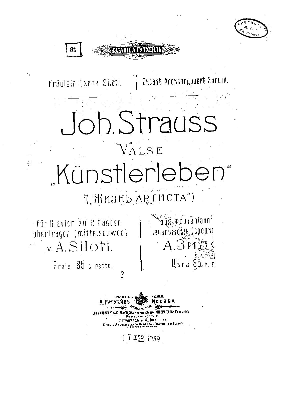 Publisher. Info. Moscow: A. Gutheil, n.d. Plate A. 9561 G.