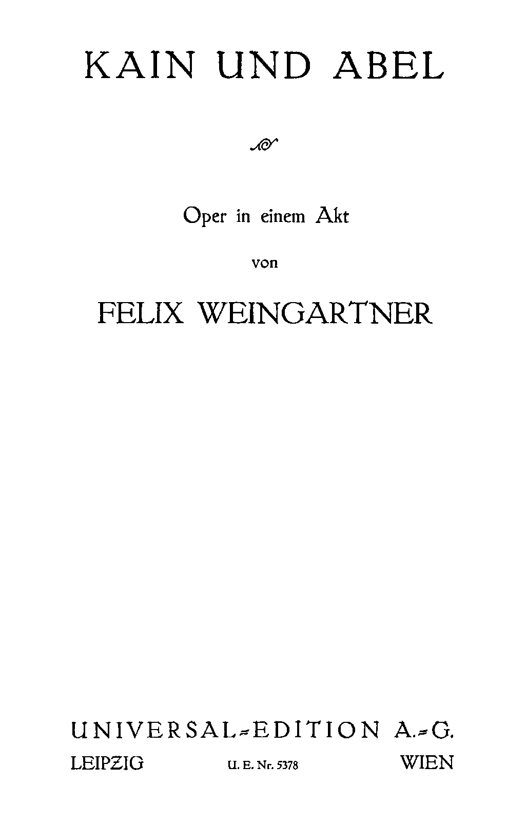 Also appears as "Abel und Kain" in ÖNB listings (specifically, the January 27 1914 score above)...