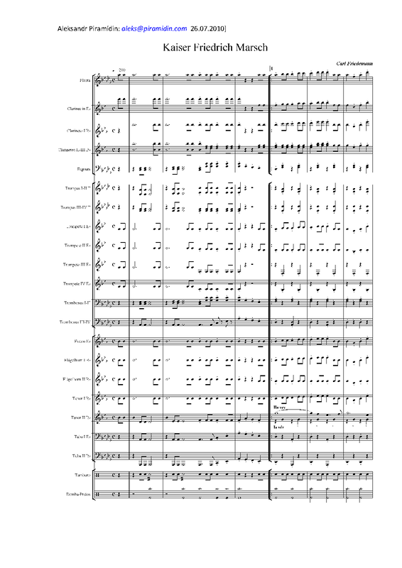 | Instrumentation | Military Band: flutes, E♭ clarinet, B♭ clarinets I-III, bassoons I-II, horns I-IV in F, trumpets I-IV in E♭, trombones I-IV, piston E♭, flügelhorns I-II in B♭, tenor I-II in B♭, tuba I in E♭, tuba II in B♭, tamburo, bomba pratos |