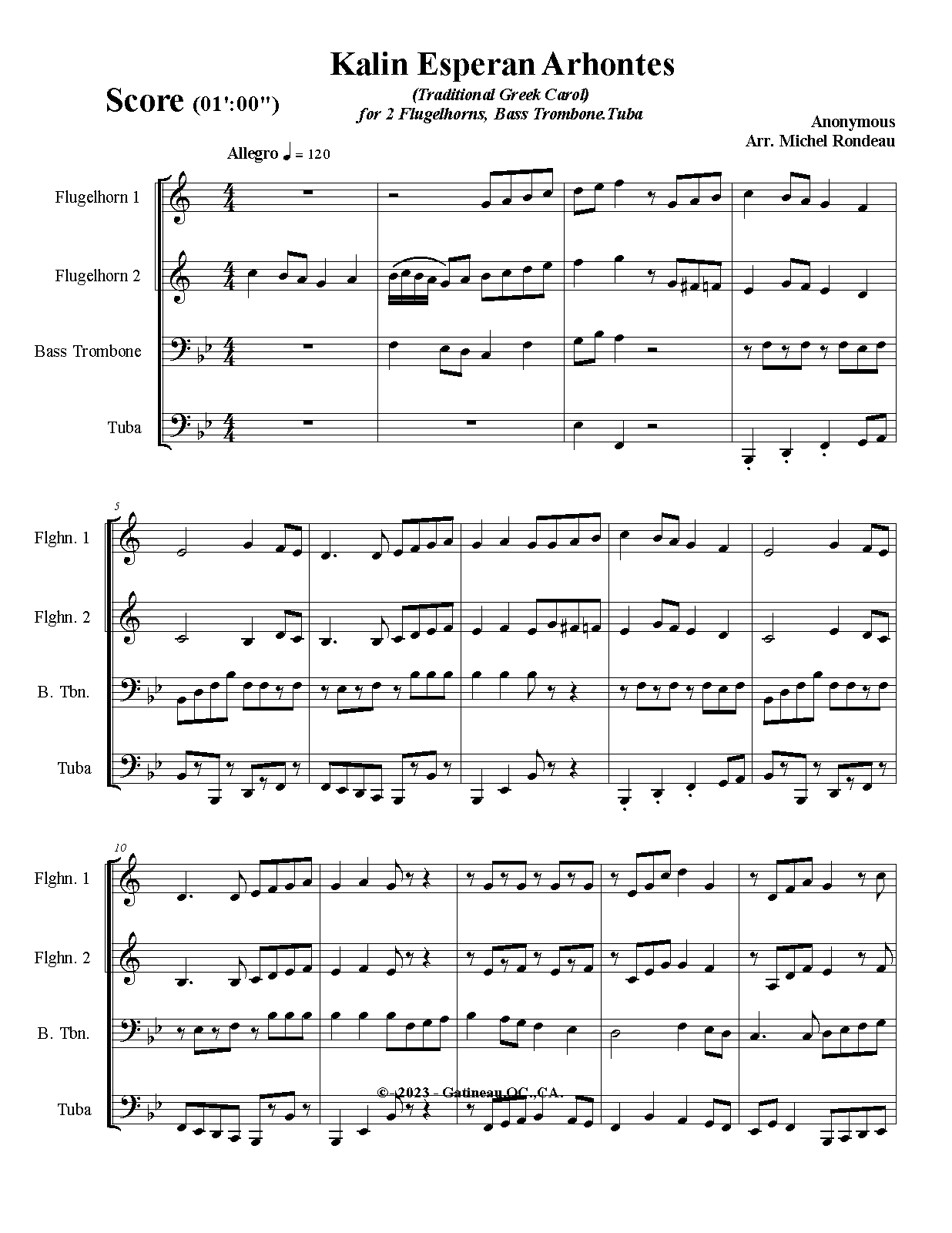 | Genre Categories | Pieces; For 2 flugelhorns, bass trombone, tuba; Scores featuring the flugelhorn; |