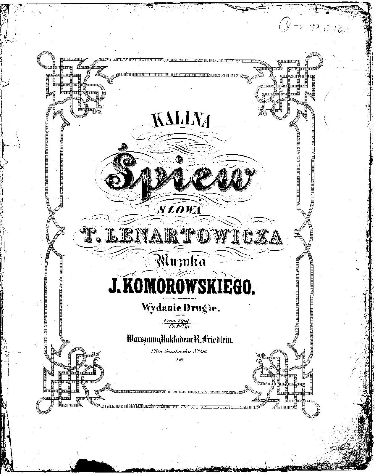 | First Publication. | 1860 ca. – Warsaw: R. Friedlein |