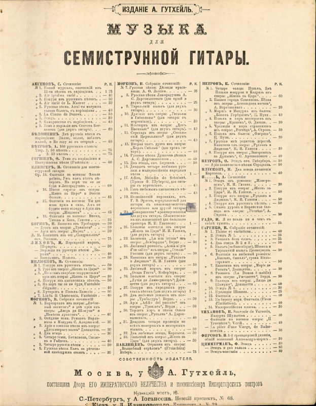 | Alternative. Title | Камаринская составленная для двухъ Гитаръ |