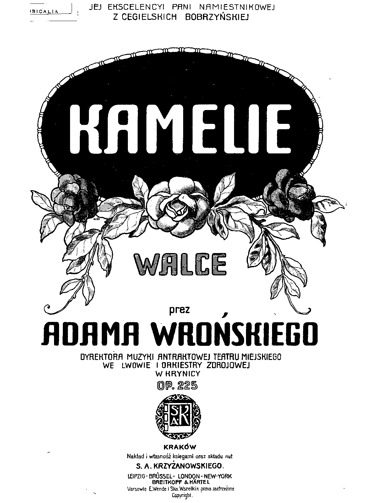 | Dedication | "Jej Ekscelencji Pani Namiestnikowej z Cegielskich Bobrzyńskiej" |