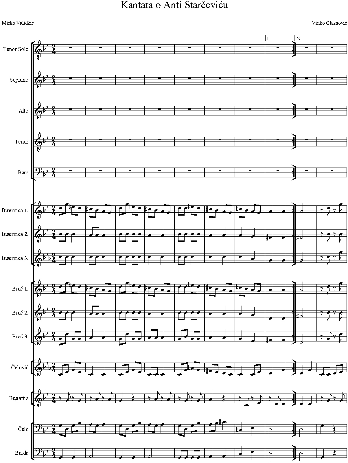 | Instrumentation | Tenor solo, mixed chorus (SATB) + tambura band (3 bisernica, 3 brač, čelovič, bugarija, čelo, berde) |
