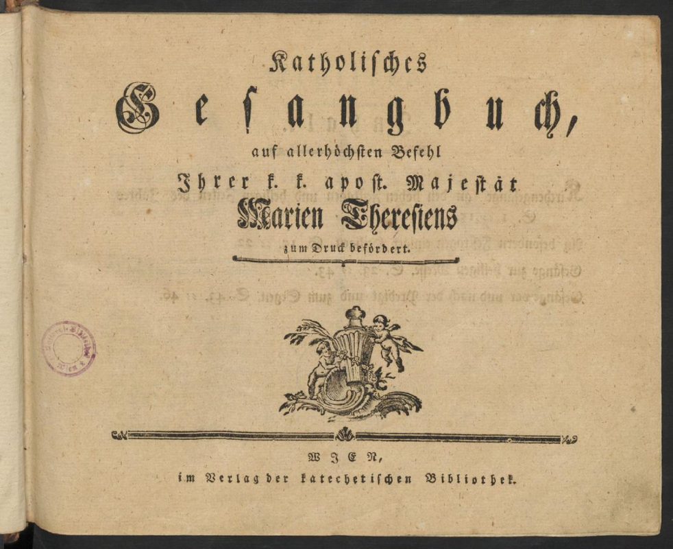 | Alternative. Title | Katholisches Gesangbuch, auf allerhöchsten Befehl Ihrer k. k. apost. Majestät Marien Theresiens zum Druck befördert |