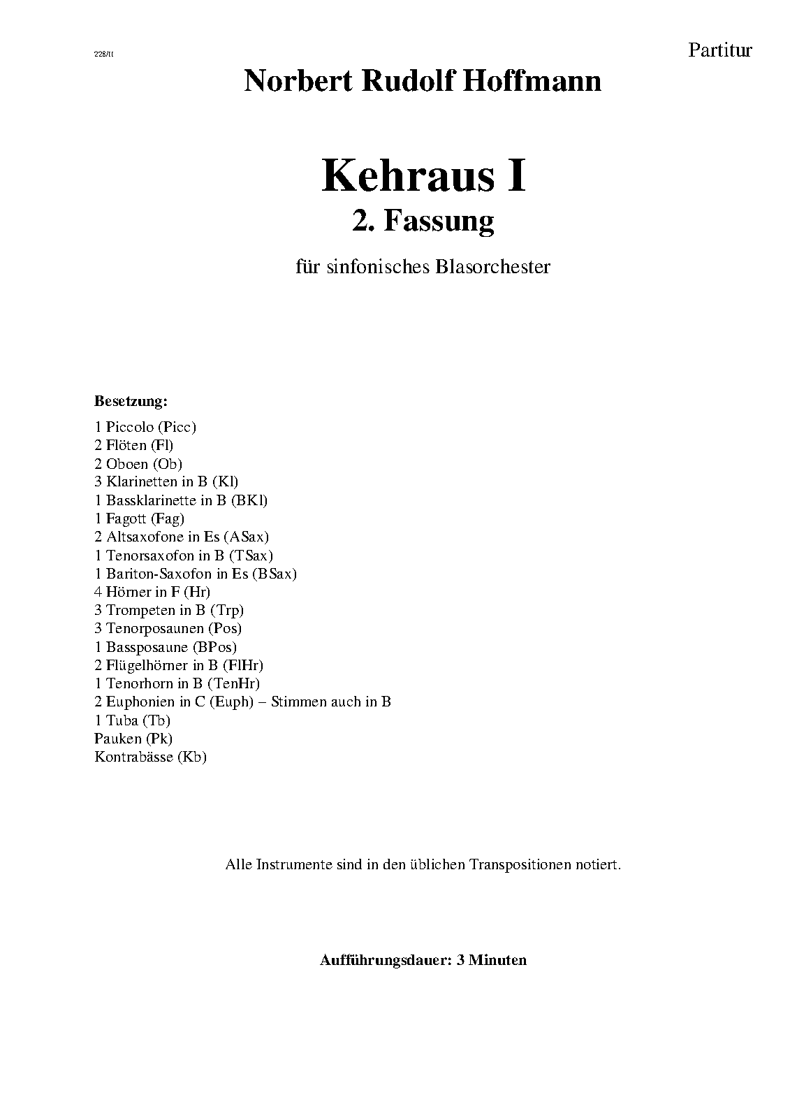 | Genre Categories | Pieces; For wind band; Scores featuring wind band; For orchestra without strings |
