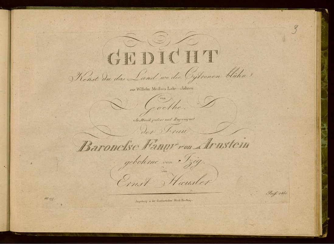 | Dedication | Fanny von Arnstein (nee von Izig) |