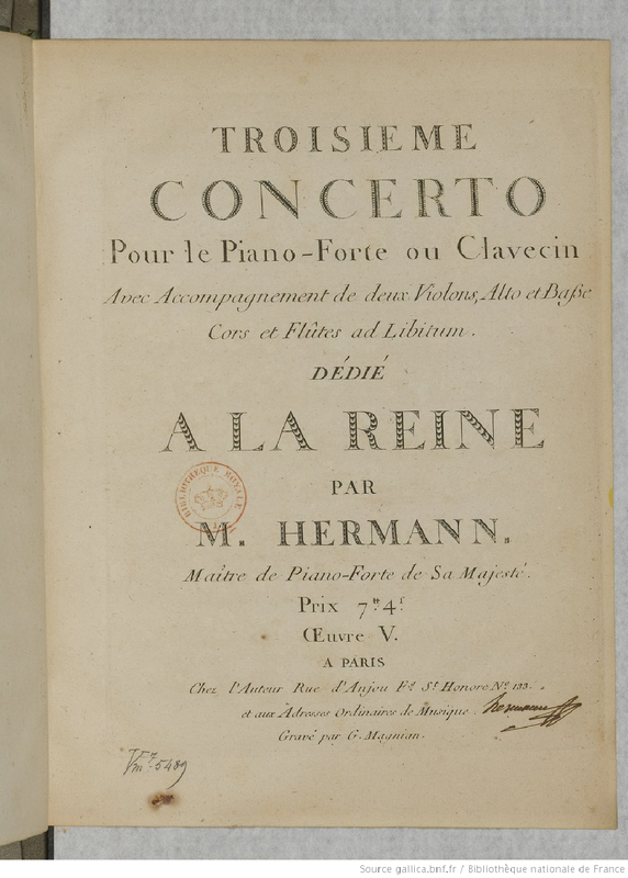 | Alternative. Title | Troisieme concerto pour le Piano-Forte ou Clavecin avec accompagnement de deux violons, alto et basse, cors et flutes ad libitum |