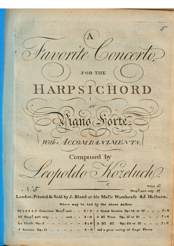 | Extra Information | Recorded on Oehms Classics, 2004 as Piano Concerto 4 (along with concertos by Kozeluch in F (no.1) and E♭ (no.5).) Boyer has "attacca subito il Rondo" at the end of the 2nd movement rather than just attacca, and the title page of its piano part has "deux hautbois et deux cors ad libitum"- whether the 2 horns or the 2 oboes and 2 horns are optional is unclear. |