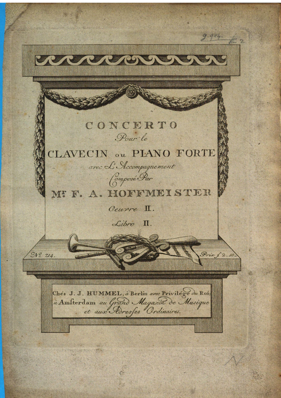 | Alternative. Title | Concert pour le Fortepiano ou Clavecin Deux Violons, 2 Obois, 2 Cors, Viole et Basse, Composé par F.A. Hofmeister |