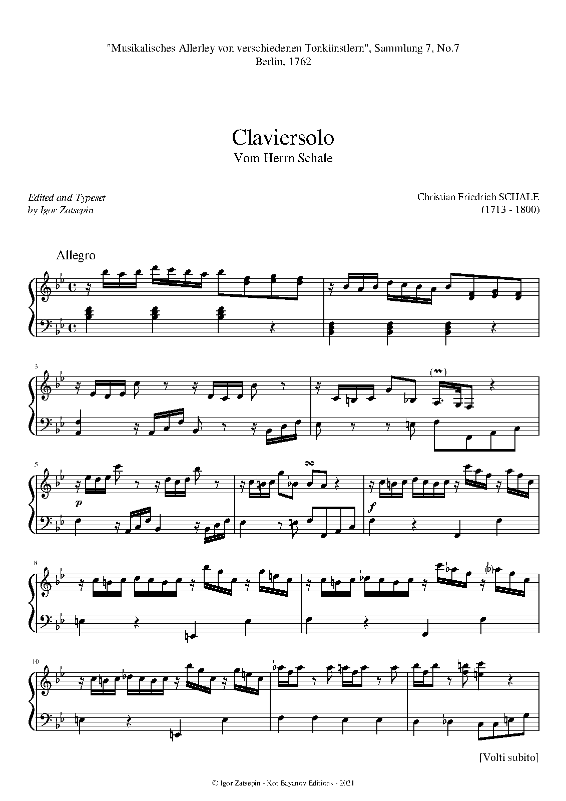"Musikalisches Allerley von verschiedenen Tonkünstlern", Sammlung 7, No.7, Berlin, 1762