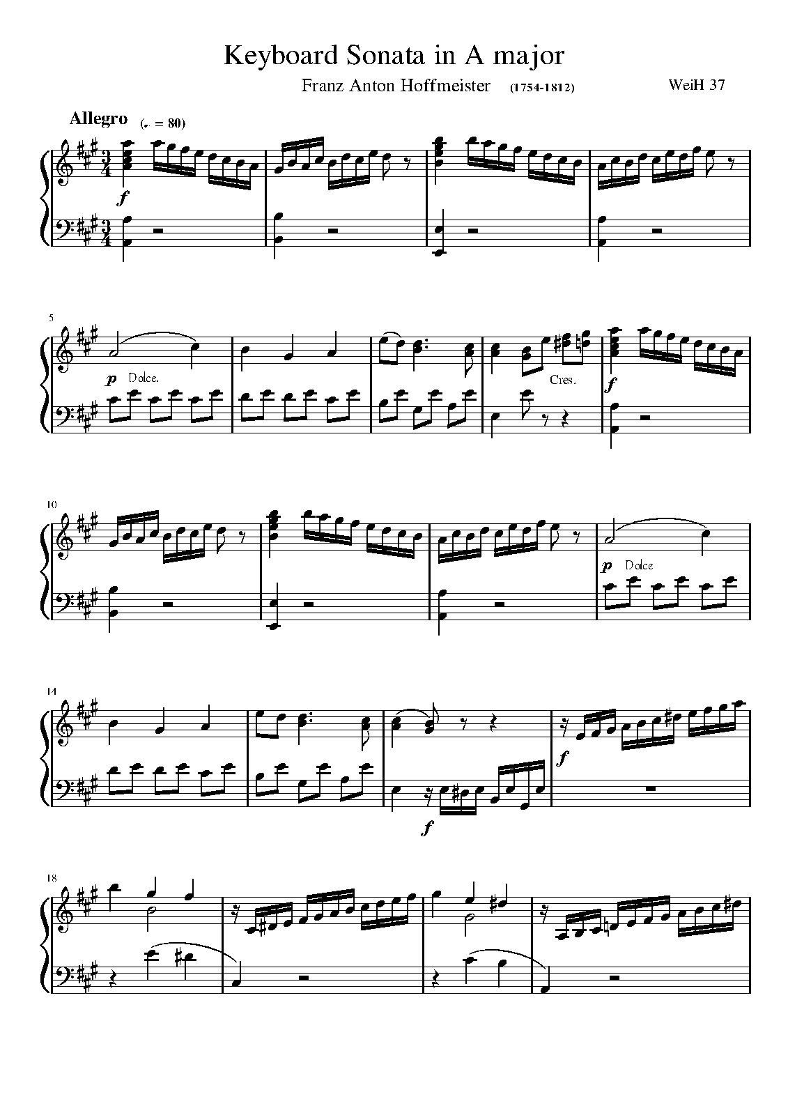 Sonata in A for Piano or Harpsichord