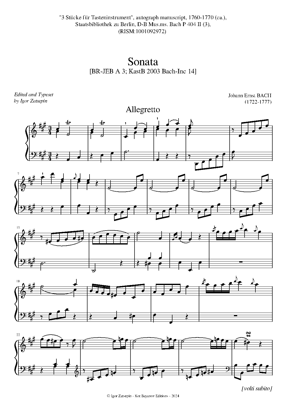 | Extra Information | "3 Stücke für Tasteninstrument", autograph manuscript, 1760-1770 (ca.), Staatsbibliothek zu Berlin, D-B Mus.ms. Bach P 404 II (3), (RISM:1001092972) |