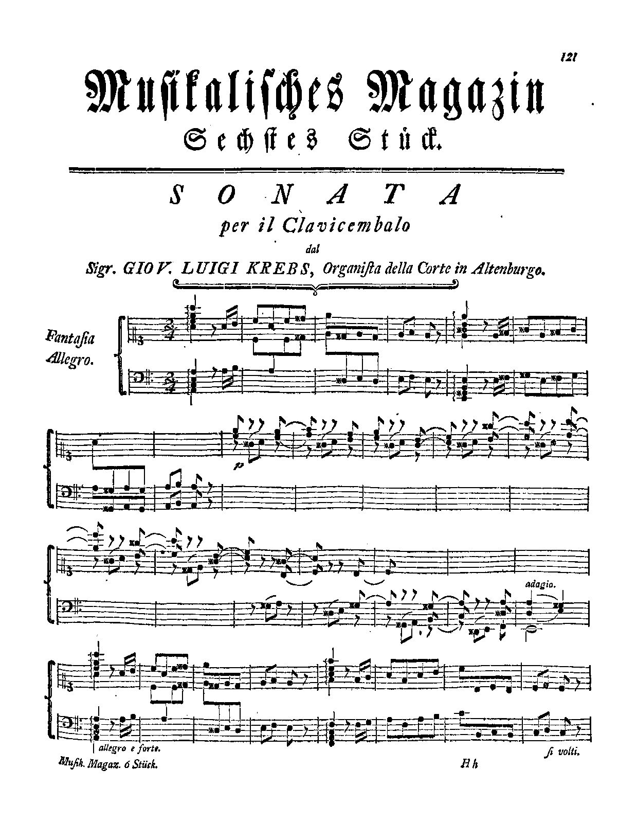 Sonata per il Clavicembalo dal Sigr. Giov. Luigi Krebs, Organista della Corte in Altenburgo.